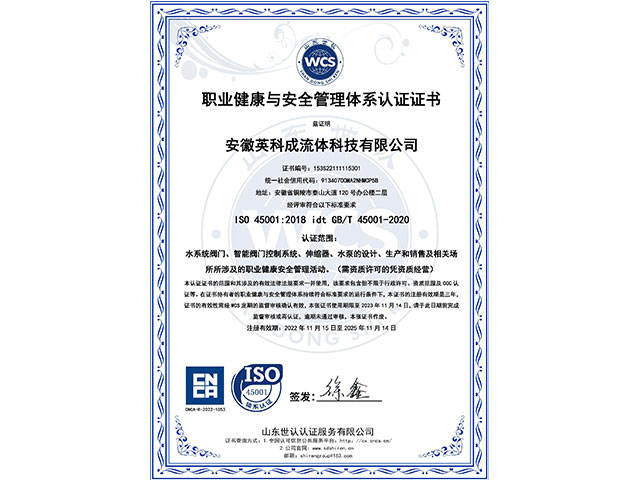 安徽英科成流體科技有限公司位于黃山腳下長江之濱的中國古銅都-安徽省銅陵市。公司注冊資金1.1億,是國內一家專業致力于給排水行業系統解決方案、閥門以及智能閥門技術研發與生產銷售服務為一體的企業。 我們擁有完善的質量控制體系和檢測設備,公司主要的產品有閘閥、蝶閥、偏心半球閥、液控蝶式止回閥、靜音止回閥、橡膠瓣止回閥、活塞式流量調節、錐型閥、節能型泵控閥、倒流防止器、減壓閥、排氣閥、排泥閥、伸縮器、閘門、啟閉機等二十多個系列,可以充分滿足客戶的一站式需求!
